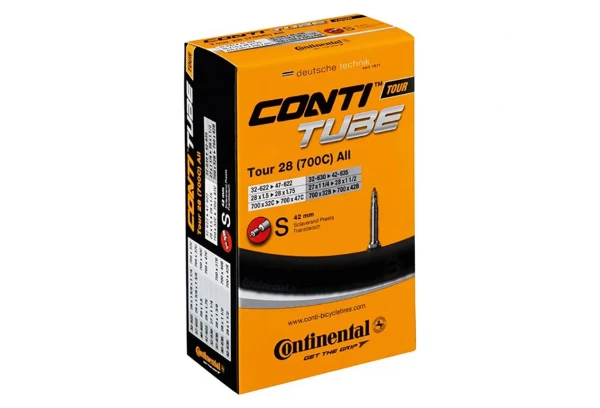Chambre à air Continental Tour 28 (700c) conçue pour une utilisation avec vos pneus ville.