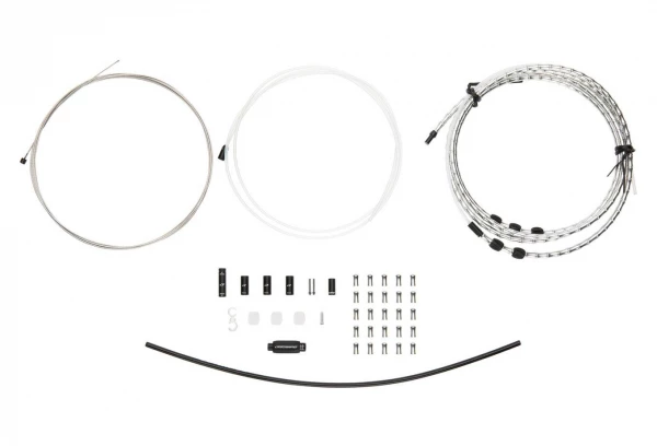 - Comprend suffisamment de gaine et d’embouts pour atteindre un dérailleur arrière ou un moyeu à vitesses internes sur un cadre typique.